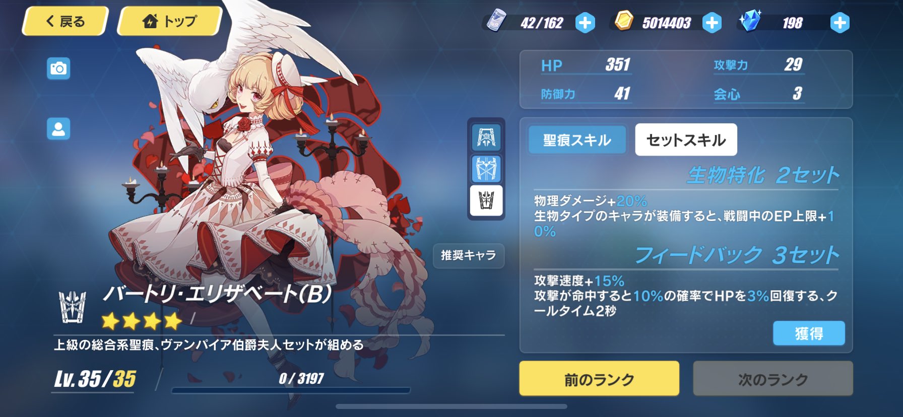 まりさん On Twitter 聖痕の上方修正軽く解説 エリザベートbは変更無し Aの会心率 5 会心では無いので美味い Cの効果が最低 10 保証化 2点セット効果が近接物理 物理 ブローニャなどの遠距離物理キャラにも効果適用 3点セット追加攻撃速度 15 チャージ速度も上がる