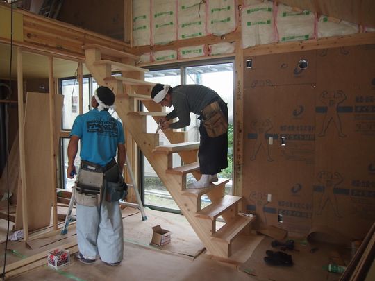 力桁 ちからげた 階段施工中 建築事務所は日々考える