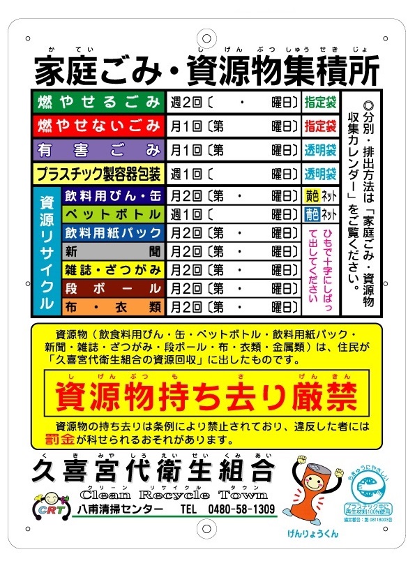 ごみ集積所の看板を配布しています 久喜宮代衛生組合